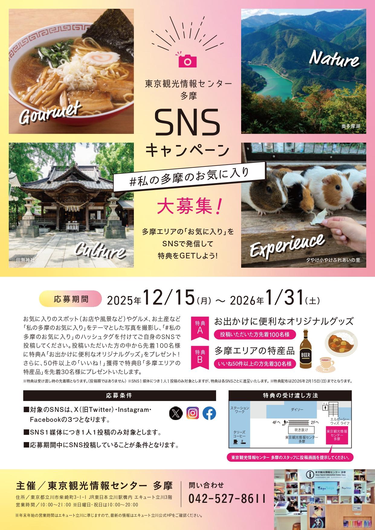 東京観光情報センター 多摩では、下記のとおりSNSキャンペーンを実施いたします。